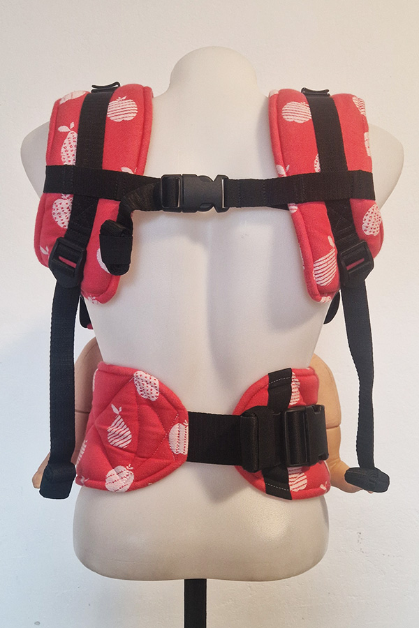 Pro nejmenší miminka cca do 8 týdnů, která ještě nedrží hlavičku slouží upínání ramenních popruhů pod zadečkem miminka na bederním pásu.