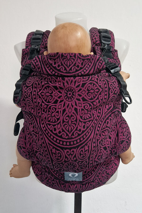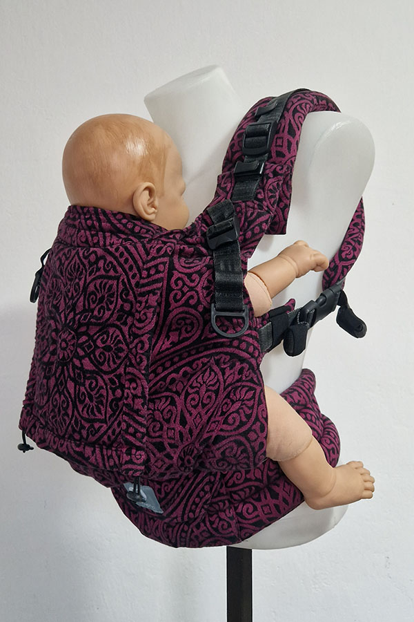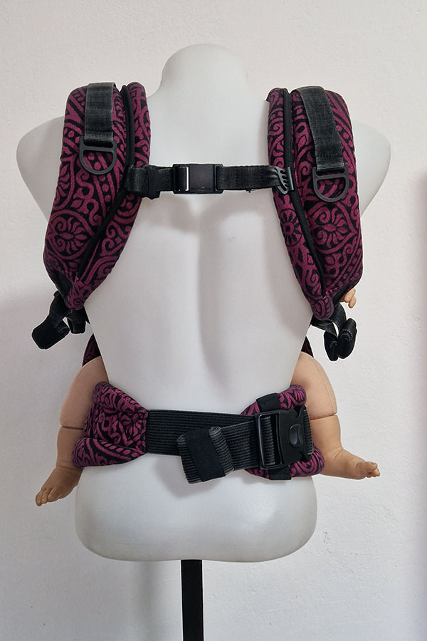 Nosítko disponuje tvarovanými ramenními popruhy s možností křížení. Hrudní spona je magnetická pro jednoduché zapínání.