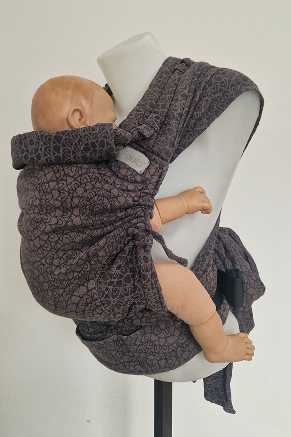 Všechna nosítka značky Fidella jsou rostoucí, lze tedy plynule regulovat šířku a výšku zádové opěrky vzhledem k velikosti dítěte pomocí šňůrek ze šátku. Taktéž můžete upravit i šířku v horní části zádové opěrky u hlavičky miminka. Nosítko slouží k nošení na břiše, na zádech či na boku, má příjemné polstrování kolem nožiček dítěte pro dokonalý komfort. Obsahuje kapuci, kterou je možné využít jako sluneční clonu.