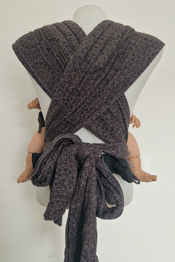 Měkký bederní pás tohoto nosítka se zapíná pomocí bezpečností přezky, která se velmi snadno dotahuje, a je vhodné od konfekční velikosti XS po XXL. Jeho ramenní popruhy jsou široké přibližně jako polovina šířky samotného šátku a do poloviny šíře měkce polstrované. Křížením popruhů přes zadeček dítěte můžete ještě zvýšit nosnost a pohodlnost při nošení těžších dětí. Velké oblibě se těší i u tatínků, kteří oceňují snadné nasazení nosítka.